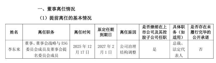 公告强调,李东来的辞任不会导致董事会成员低于法定人数,其作为公司总裁、法定代表人的核心经营管理职责没有任何变化。通过此次调整,公司治理架构完成了与最新法律法规的衔接,董事会内部结构亦根据取消了监事会的新模式进行了重组。目前,公司第五届董事会中由职工代表担任的董事仅为李东来一人,兼任高级管理人员的董事人数符合法定要求。