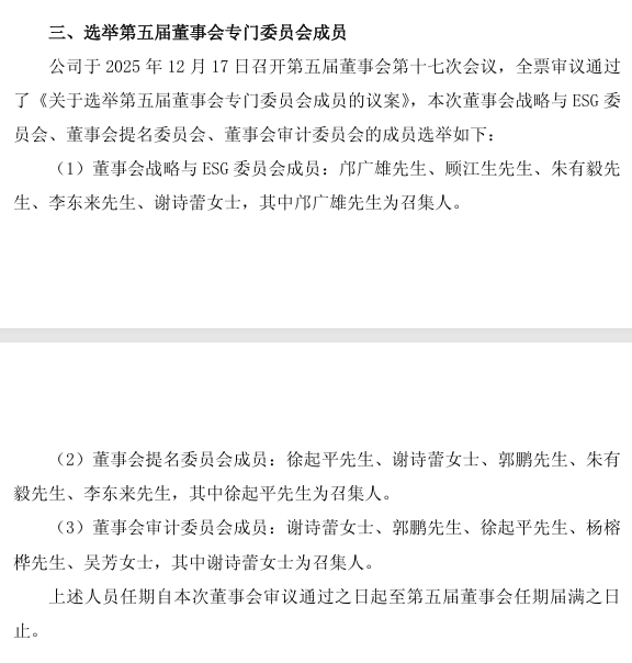 12月17日晚间,顾家家居发布公告,披露了董事会的最新调整情况:公司董事、总裁李东来因“公司治理结构调整”,辞去其第五届董事会董事、董事会战略与ESG委员会成员及提名委员会成员的职务。然而,几乎在同一时间,公司召开职工代表大会,选举李东来担任第五届董事会职工代表董事,其任期将延续至本届董事会届满。随后召开的董事会会议,重新选举了各专门委员会成员,李东来在新的董事会战略与ESG委员会及提名委员会中均保留了席位。