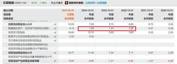 这从亿田智能业绩上可窥一斑:前三季度营业收入2.45亿元,同比下跌45.51%;归属于上市公司股东的净利润亏损1.11亿元,同比下滑904.67%。更为关键的是,反映主业“造血”能力的经营性现金流量净额,首次出现3900万元的净流出。数据显示,公司经营活动现金流自2021年后便逐年下滑,直至2025年陷入负增长。