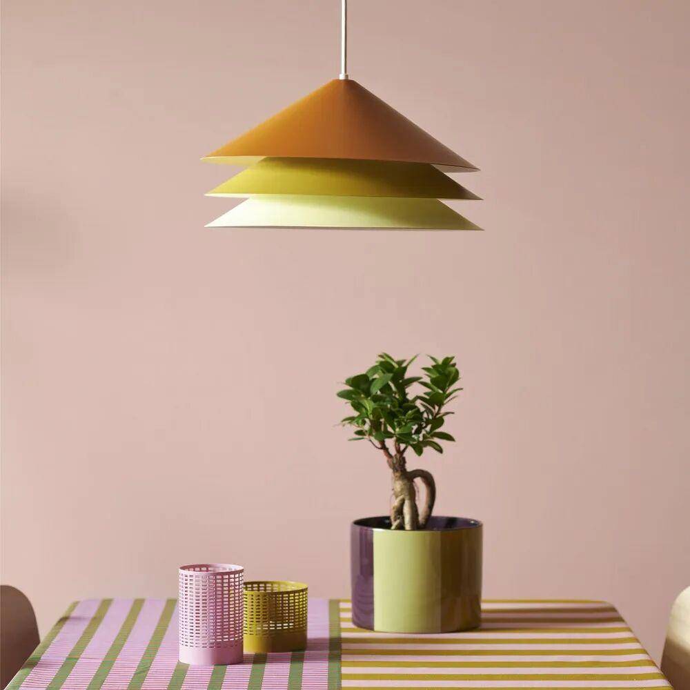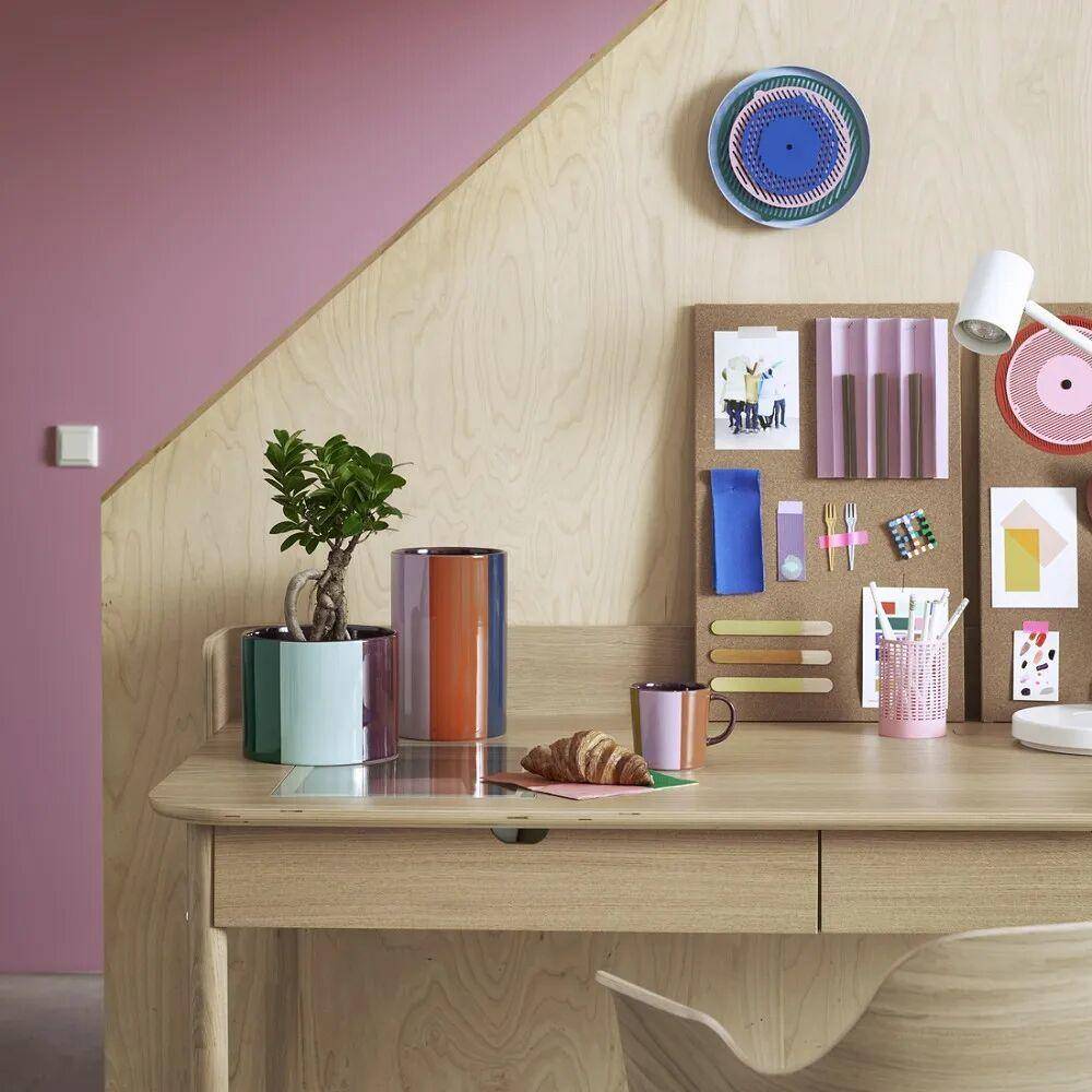 系列中不少产品以组合形式呈现,鼓励用户自由搭配与叠用。伞状造型吊灯采用三层渐变色灯罩,开灯后呈现柔和的光色交融效果;马克杯在手柄两侧运用不同颜色,在日常饮水时增添一抹悦目细节。花瓶与花盆套装、烛台套装等均支持单独或叠放使用,既适应多种场景,也通过色彩与形态的互动,营造出富有情感与趣味的生活场景。