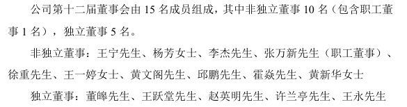 值得关注的是,此次董事会换届并非一次简单的人事轮替。从公布的名单来看,新一届董事会由15名成员构成,其中非独立董事10人,独立董事5人。核心管理层保持稳定,王宁、杨芳等继续留任非独立董事,而独立董事阵营则出现了多位新面孔:董皞、王跃堂、赵英明、许兰亭、王永。具体名单如下: