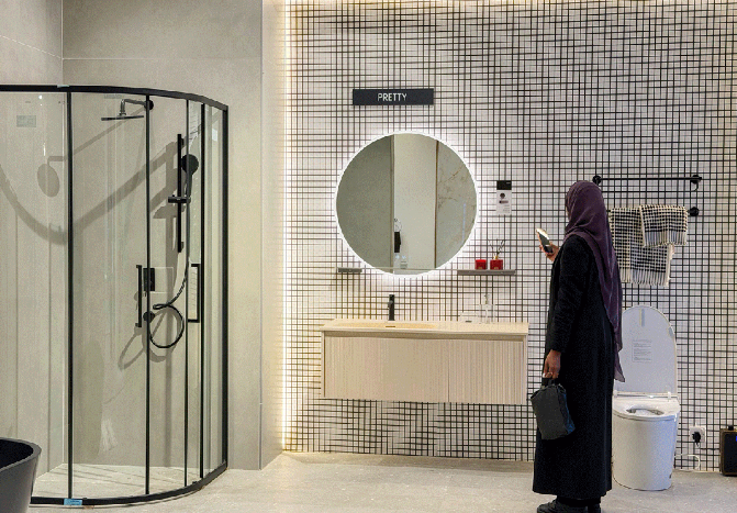 这一战略性投资背后,是九牧对中东市场,尤其是沙特阿拉伯未来潜力的深刻洞察。沙特正在大力推进以“2030愿景”为核心的国家转型,城市化进程、大型基建与高端房地产开发持续释放出巨大的市场需求。同时,当地独特的家庭结构、居住形态以及高温干燥的气候环境,对卫浴产品的耐用性、稳定性和系统适配性提出了更高要求。九牧此次落地超大展厅,正是为了更近距离地理解这些需求,并展示其成熟技术体系与多元化解决方案如何满足甚至超越本地期望。