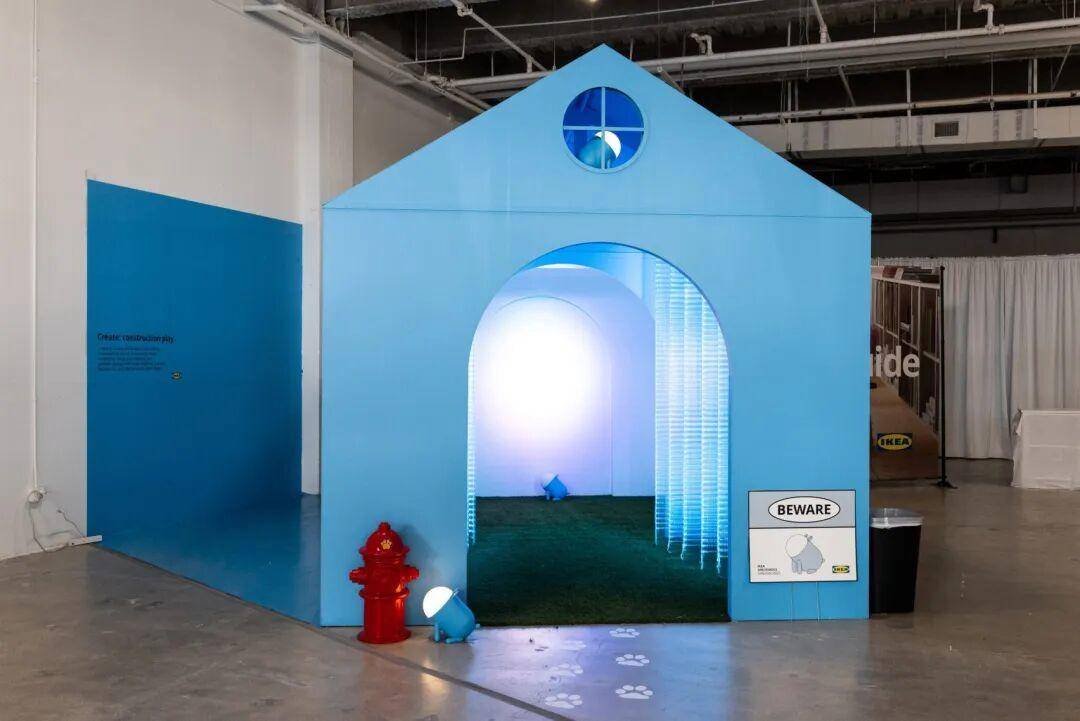 为了推广这一系列,宜家在迈阿密海滩林肯路的一处空置零售空间内,打造了名为“宜家迈阿密开放屋”的临时展馆。展馆由宜家自主设计,其核心区域集中陈列了所有产品,四周则延伸出四个风格各异的独立小展区,分别用于突出某件特定单品。例如,Krupińska设计的狗形灯具被置入一个亮蓝色的超大狗屋中;而Ojerstam重新设计的、覆盖着绒毛的经典Mammut儿童椅,则被安置在浅粉色的泳池甲板场景里,呼应着迈阿密的地域风情。