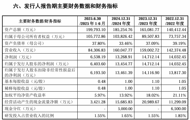 从经营表现看,公司近年业绩总体稳健。2022年至2024年,营业收入分别为14.24亿元、15.90亿元和16.00亿元,同期归母净利润分别为1.40亿元、1.47亿元和1.35亿元。2025年上半年,公司实现营收8.43亿元,扣非净利润0.64亿元。在近年部分家居产业链企业承压的背景下,公司仍保持了相对稳定的盈利水平。