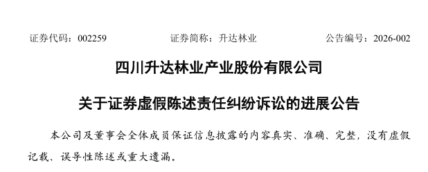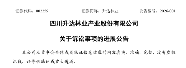 在2026年伊始,四川升达林业产业股份有限公司(简称“升达林业”)通过密集公告,披露了近期在多起重大诉讼中取得的积极进展,这系列法律纠纷的化解,正为其经营复苏与财务结构优化释放出关键空间。