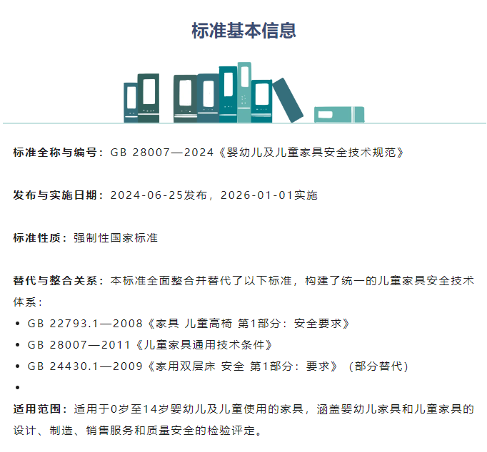 随着新一年的到来,一项关乎全国亿万家庭的重要国家标准正式落地。自2026年1月1日起,强制性国家标准GB 28007—2024《婴幼儿及儿童家具安全技术规范》开始全面实施,它取代了过去分散在不同标准中的要求,构筑起一道更为系统、严格的儿童家具安全防线。