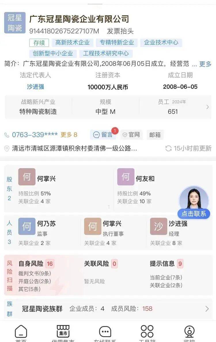据公开信息显示,广东冠星陶瓷企业有限公司成立于2008年,注册资本1亿元,是一家拥有“高新技术企业”“专精特新企业”等多项资质的中型制造企业。然而,亮眼的标签背后,却是长期拖欠工资的痼疾。有本地网友反映,该厂拖欠工资并非首次,往年也常出现类似情况,只是以往大多能在年底前结清,而今年形势却显得尤为严峻。