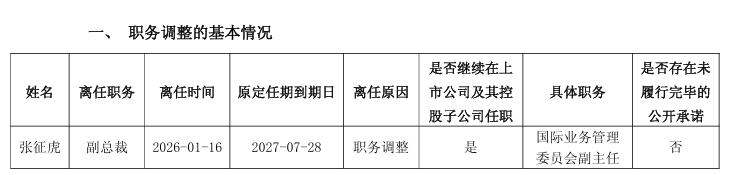 值得关注的是,此次职务调整并未涉及人员的完全离任。根据公司披露的信息,张征虎先生辞去副总裁职务后,将继续在公司国际业务管理委员会担任副主任职务,未来将更专注于公司国际业务板块的管理工作。这一安排表明,此次变动更多是公司内部治理结构优化与业务重心调整的体现,而非人事层面的彻底更迭。