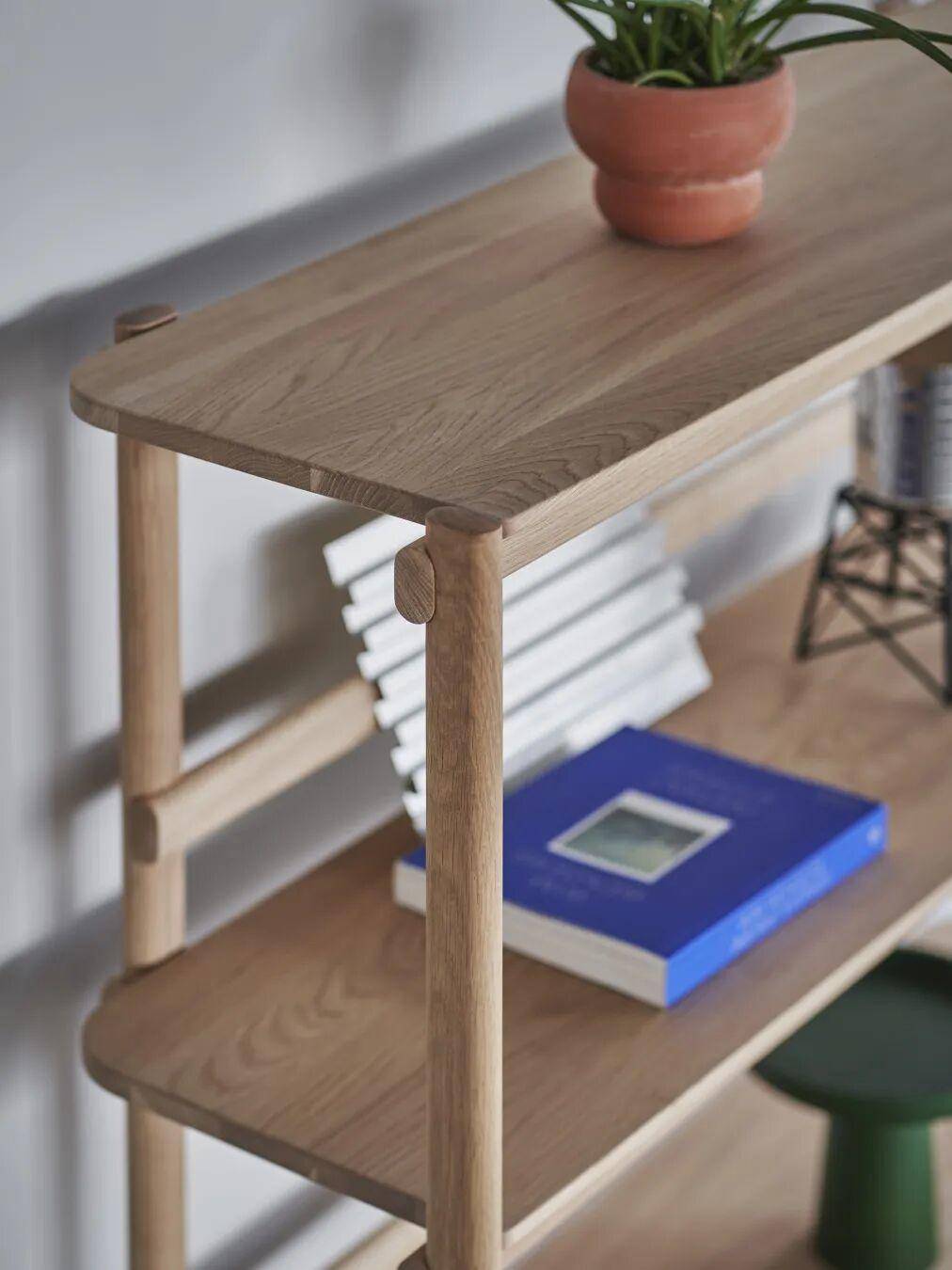 每一件Archive置物架均由Karimoku资深的匠人手工制作,选用纤细的日本国产橡木板材,通过精巧的结构拼接而成。细节处经细腻打磨,拼接工艺优雅考究,搭配流畅柔和的线条,使其无论置于何种空间,都能成为点睛之笔。