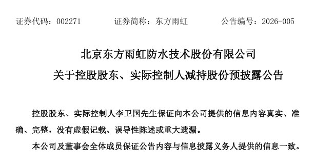 防水材料行业龙头东方雨虹的控股股东、实际控制人李卫国再次披露大规模减持计划,引发市场关注。
