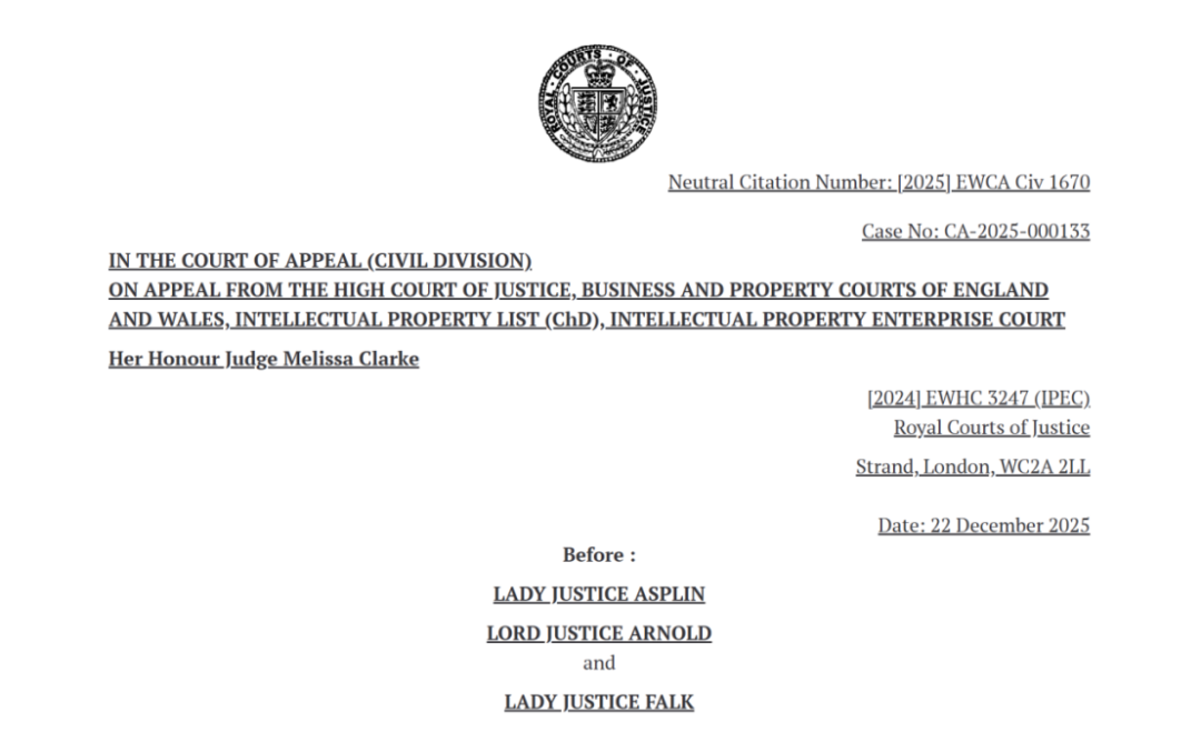 2025年12月22日,英格兰和威尔士上诉法院驳回知识产权法院2024年的该判决,认定Kohler Mira的涉案专利无效,且即便有效也未被Norcros集团旗下Triton品牌的DuElec淋浴系列侵犯(案件号:[2025]EWCA Civ 1670)。