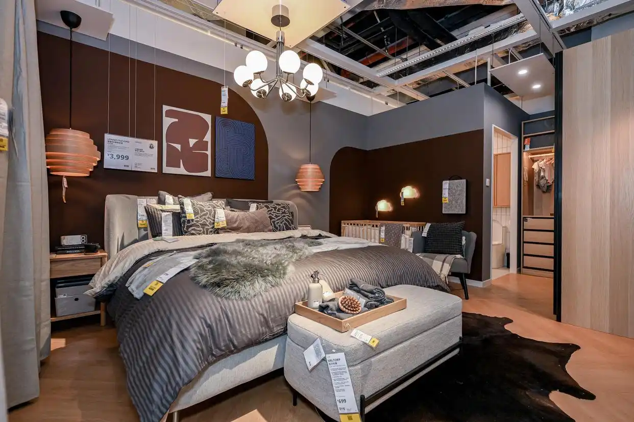 作为宜家深耕大湾区的重要落子,东莞商场选址于城市核心商圈鸿福路,辐射范围覆盖全市千万常住人口。在筹备阶段,宜家团队通过深入本地家庭调研,精准捕捉不同居住阶段人群的需求,在店内打造了客厅、卧室、餐厅、厨房、书房、浴室等6大生活场景展间。展间模拟了从小户型到三代同堂大宅等多种户型布局,通过高性价比的家居产品和收纳方案,直观呈现“把家变美”的可能性。