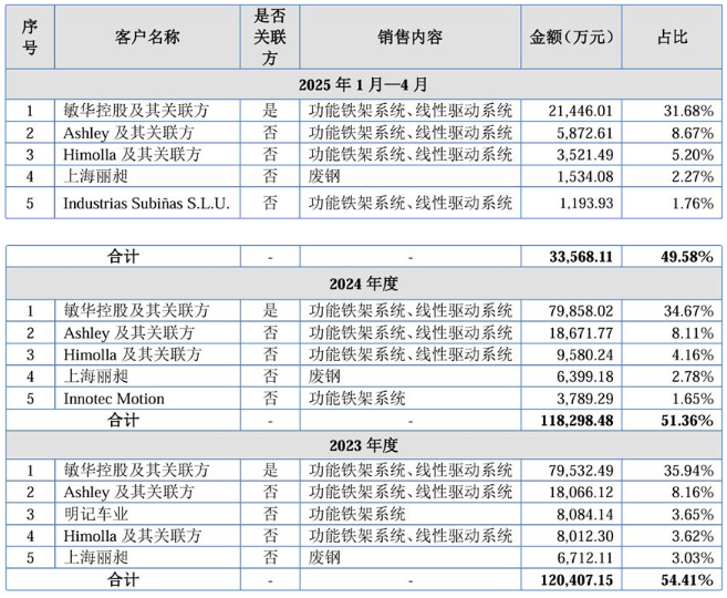 值得注意的是,锐迈科技与敏华控股体系存在较为紧密的关联交易。报告期内,公司直接向关联方销售商品分别为7.95亿元、7.99亿元以及2.14亿元,主要系向敏华控股及其关联方销售功能铁架系统及线性驱动系统相关产品,占营业收入的比例分别为35.94%、34.67%以及31.68%。公司解释称,这是基于产业链协同的正常商业安排。