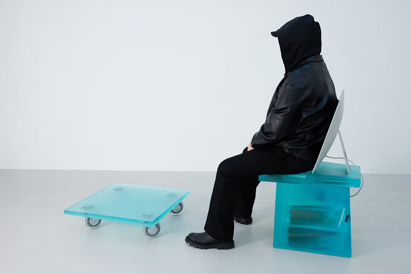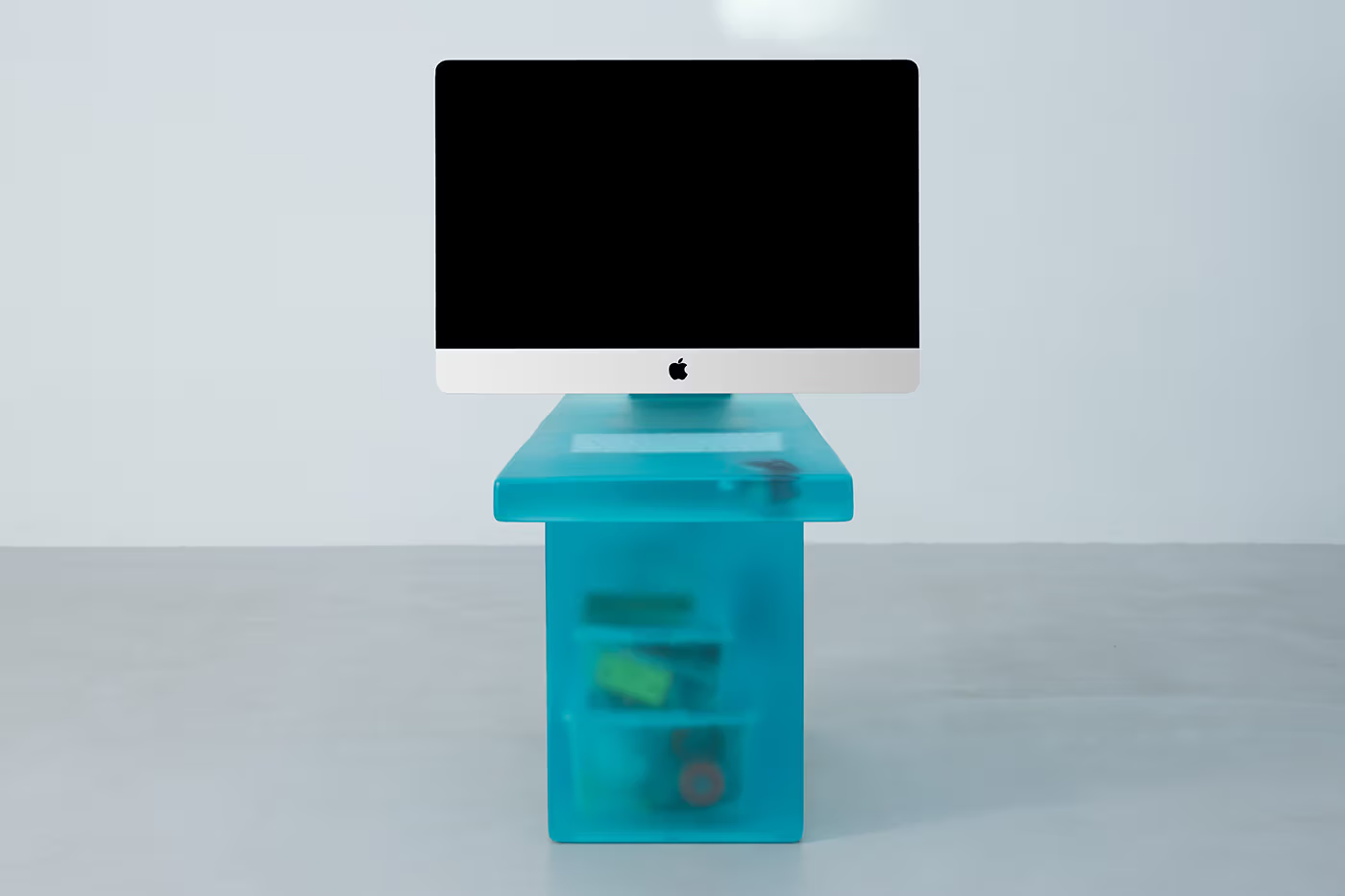 系列中的每件作品都通过结构上的激进变化,为熟悉的物件重新指派功能。在「Dip1」中,一台iMac被转化为椅背,屏幕依然清晰可见,而键盘与收纳箱则在树脂下化为模糊的轮廓,象征着鲜明记忆与逐渐褪色之间的距离。