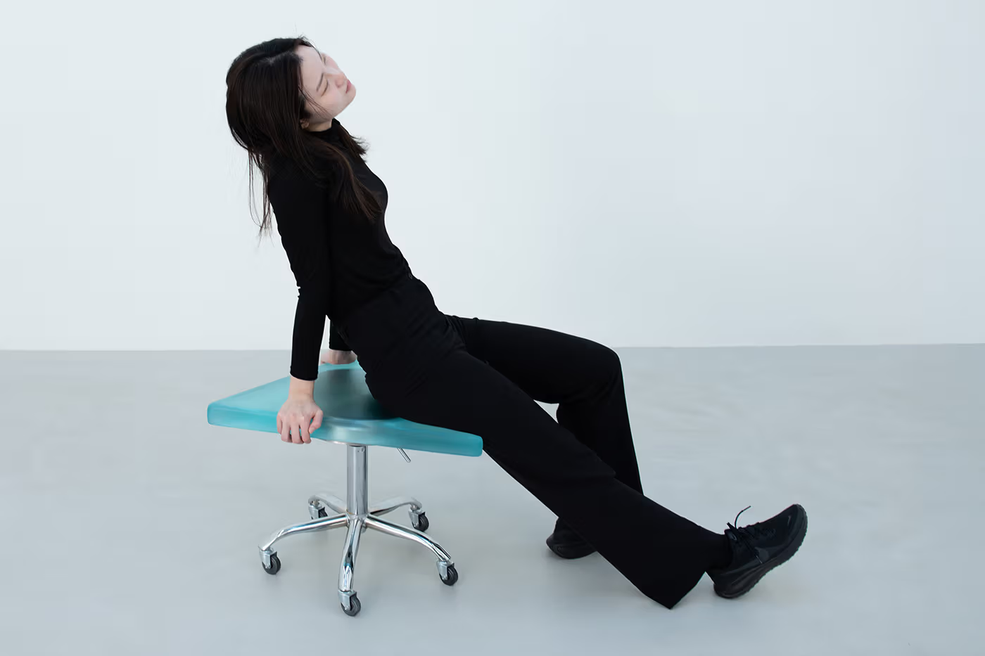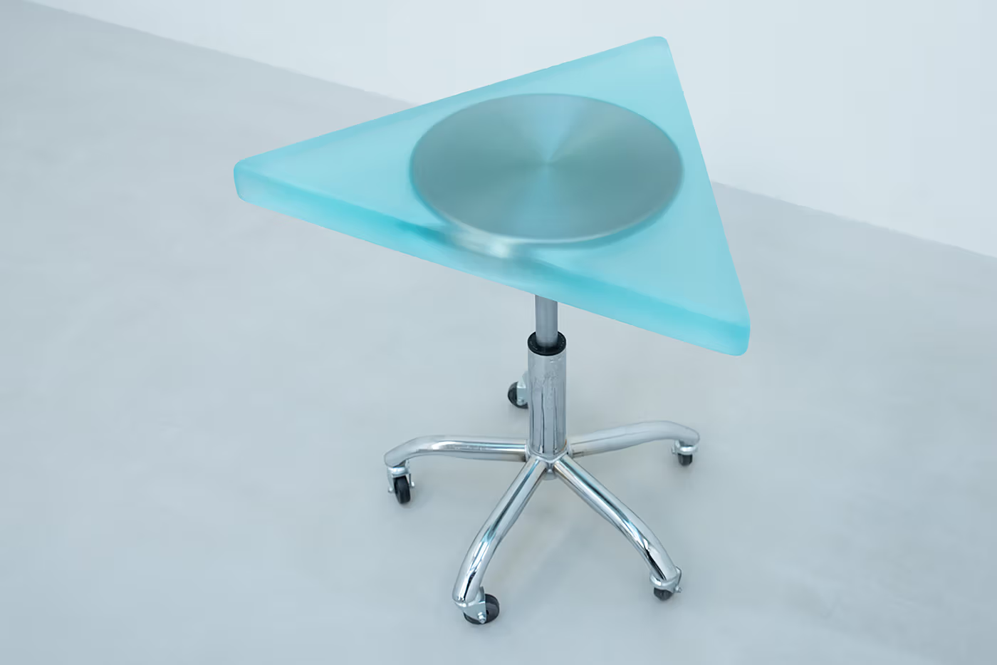 「Dip2」则将工作室圆凳延展成不定形的三角体量,原本的座面被封存在树脂之中,指向记忆中的盲点。新增的体量为日常工具开启了更多可能性,打破了传统家具设计的既定框架。