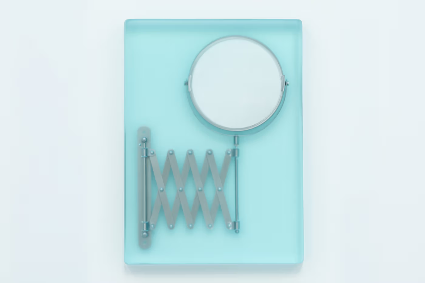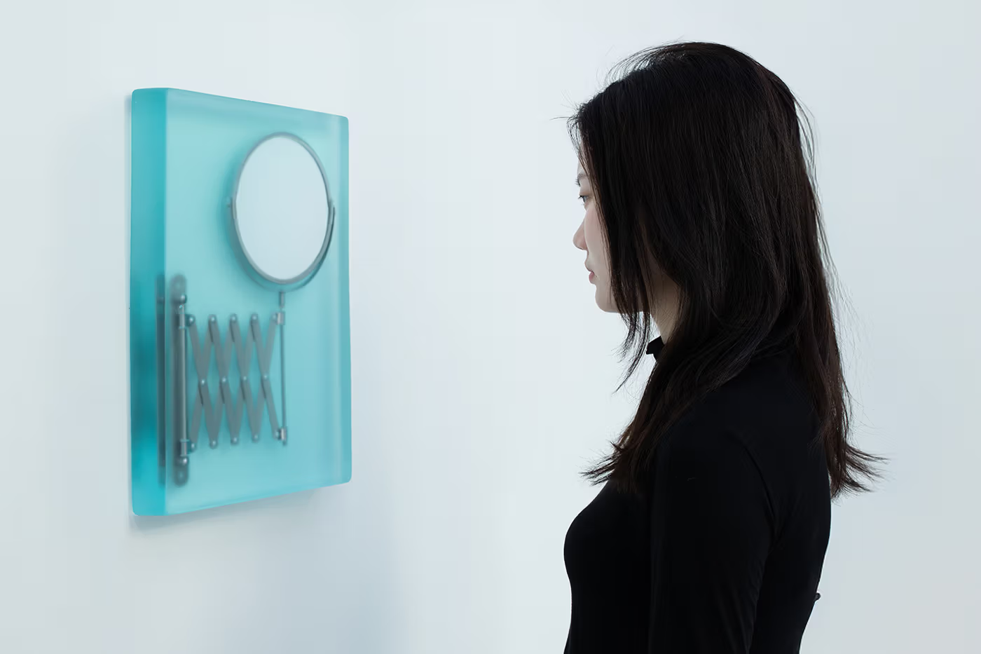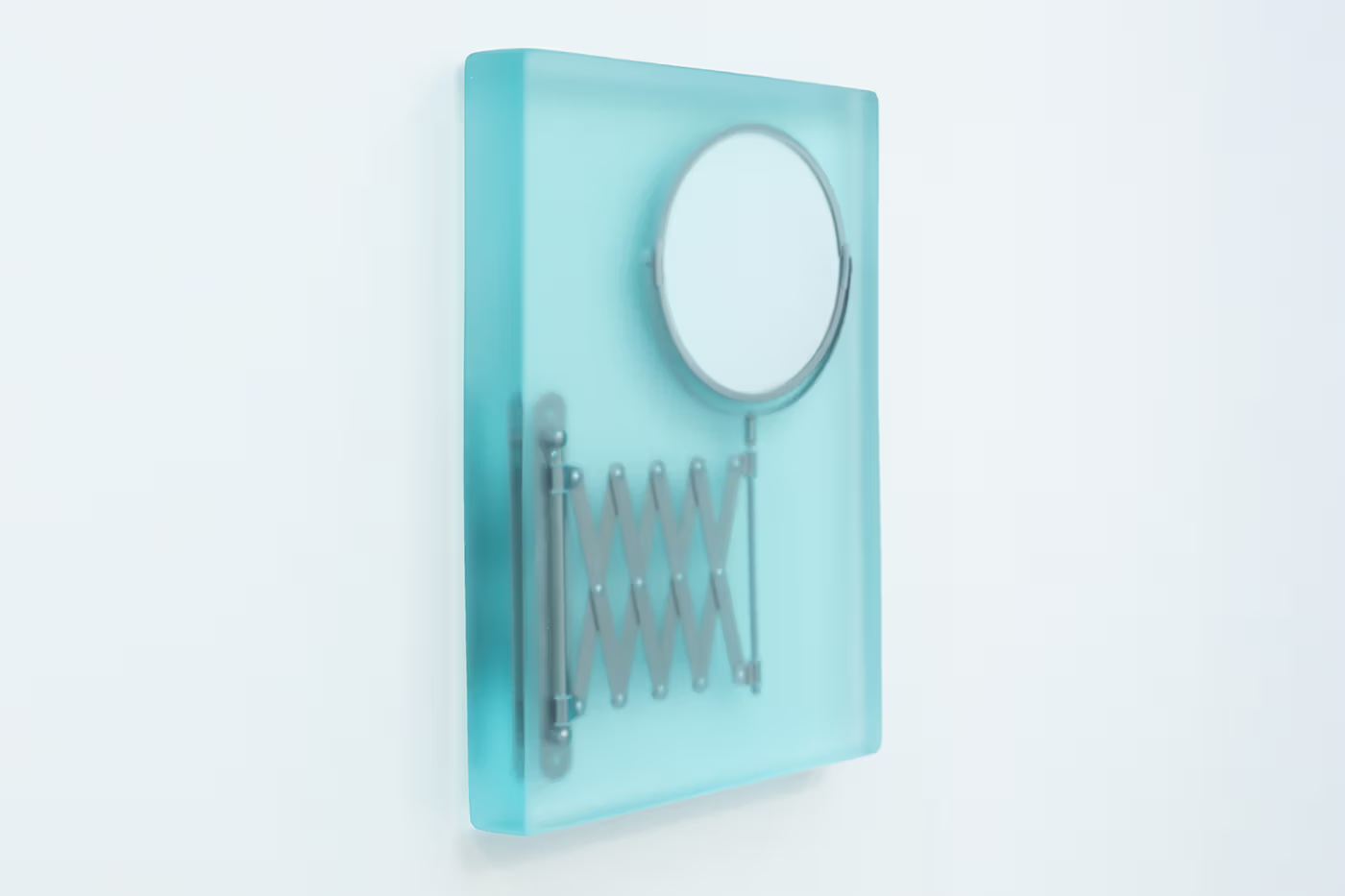 「Dip3」将一面闲置的可调式镜子彻底转化为纯粹的雕塑作品。镜面被封存于树脂中,反射功能随之消失,只剩半透明的表面与被固定的轮廓。这面曾以实用为主的镜子,成为渗透空间的视觉元素,说明当物件脱离实用角色后,如何获得全新的雕塑秩序。