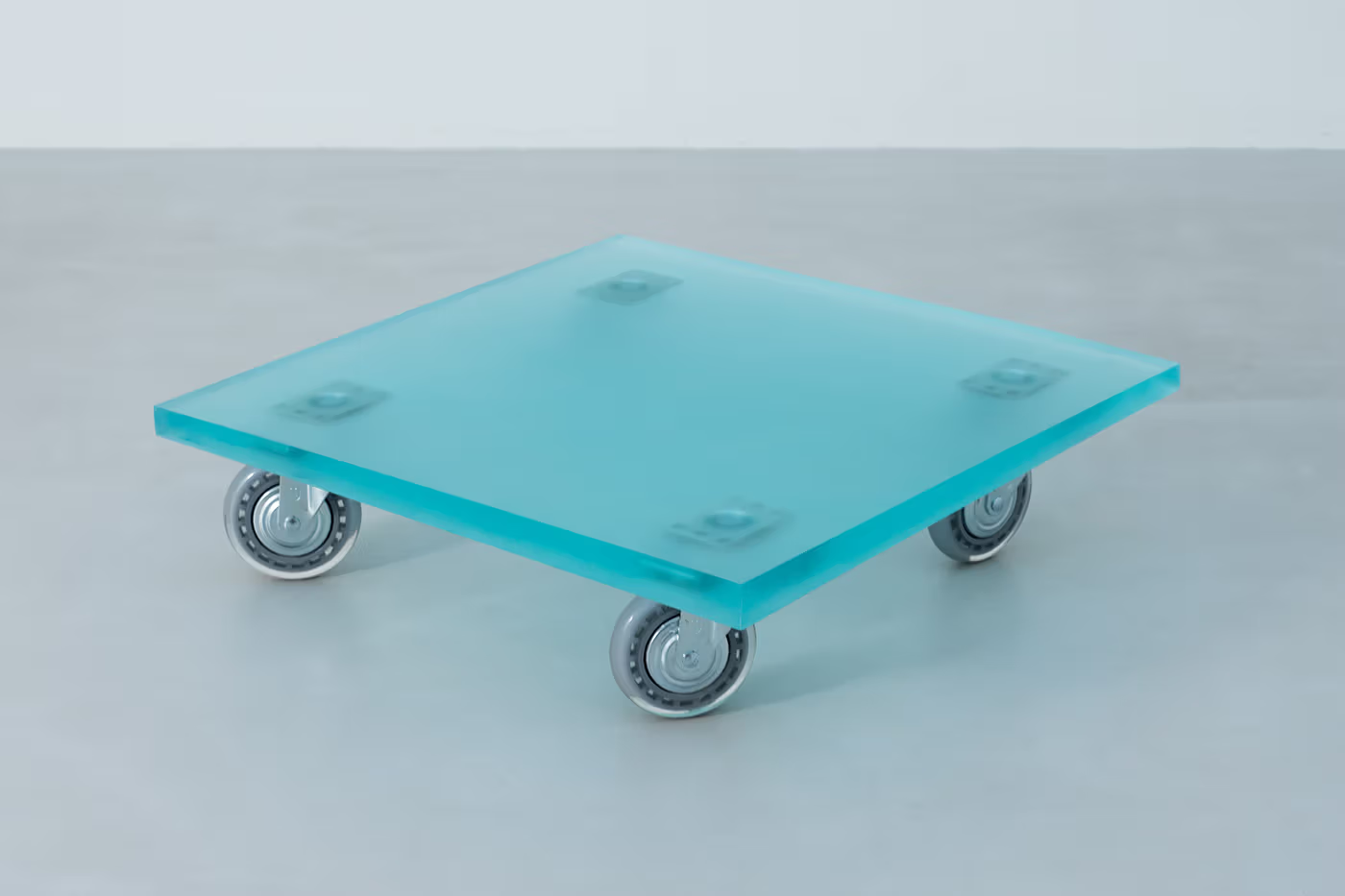 同样地,「Dip4」以树脂取代破损工作推车的上层平台,只保留外露的轮子作为支撑,透明的树脂台面终止了其运输功能,令推车得以转化为一张低矮的茶几。