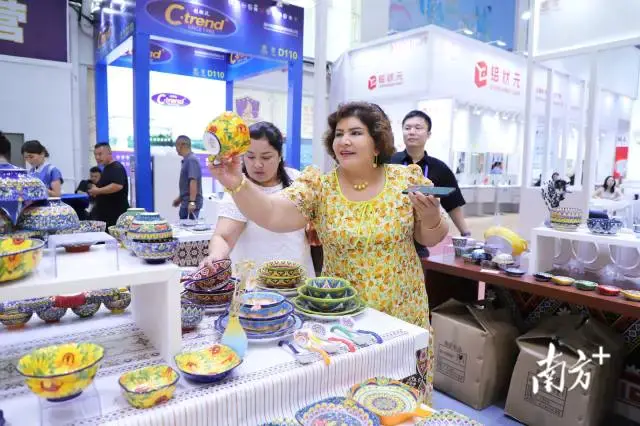 喀交会上,采购商对波西米亚风的潮州陶瓷颇感兴趣。纪金娜摄