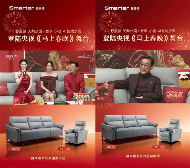 在技术与商业双轮驱动的同时,舒漫德的品牌影响力正在加速从行业新星向大众品牌跨越。2026年除夕,舒漫德“007天鹅公园”AI智能沙发与“智享·小音”语音智能单椅登上央视财经频道《马上春晚》,成为首个以产品入选方式登陆国家级媒体平台的智能家居细分赛道品牌。3月12日至15日,舒漫德还将参与2026上海AWE中国家电及消费电子博览会,全景展示其独创的新一代AI自适应技术。