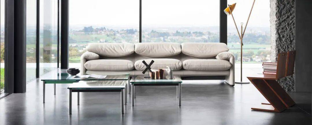 1970年代初的意大利,战后经济复兴与工业生产力的提升正悄然改变着人们的生活方式。家居空间的意义不再局限于正式接待的场所,而是逐渐转向对日常生活舒适性与灵活性的追求。维科·马吉斯特雷蒂正是在这样的时代背景下,受Cassina委托,为当代居家环境设计一款兼具视觉美感与实用功能的沙发。Maralunga Sofa由此诞生,成为功能与形式双重考量的实践结晶。