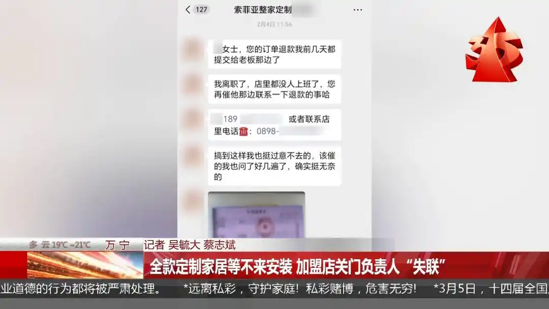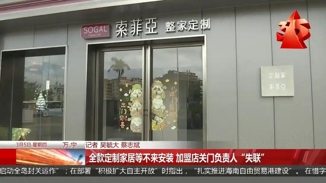 万宁索菲亚加盟店被指“失联”,多人交钱后无人安装,总部回应了!