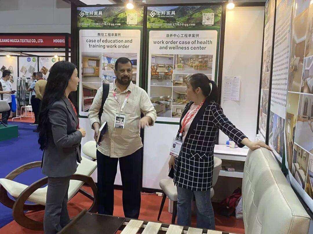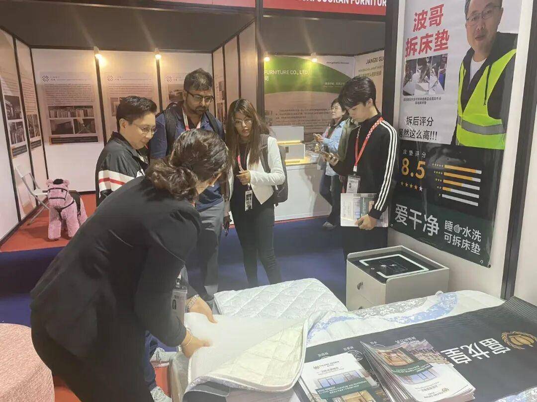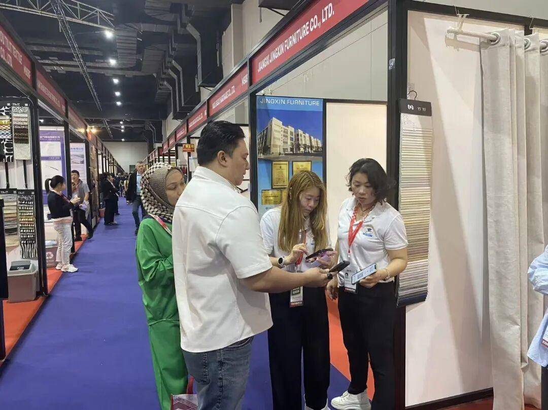 对于首次亮相马来西亚展会的星邦和海邦而言,这一天同样是惊喜连连。两家长期深耕海外市场的企业,开展首日便接待客商40多人并互换联系方式,达成意向客户十余个。从现场的火爆程度来看,南康家具的海外热度正在持续升温。