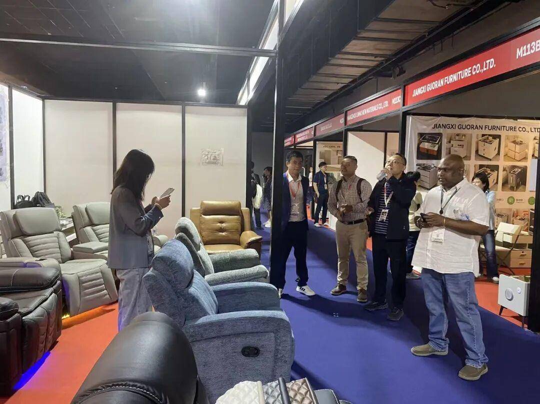 展会首日,南康家具展位前便呈现出火爆场面。来自世界各地的采购商慕名而来,将展位围得水泄不通。他们仔细查看产品材质,亲身体验使用手感,对南康家具的环保品质、人性化设计以及高性价比给予高度评价。“0苯0甲醛”的环保优势更是让不少海外客商赞不绝口。据初步统计,仅首日,南康家具参展团累计接待全球采购商超600人次,达成初步合作意向百余项。