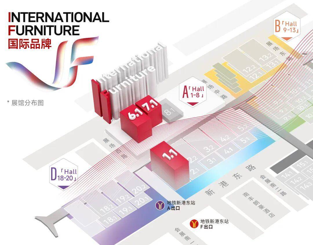 国际馆设在广交会展馆A区一楼,核心展馆1.1、6.1-7.1号馆荟聚多元设计文化,充分展现国际前沿设计与精湛工艺精髓,与同处A区一楼的当代设计展(2.1-5.1号馆)、整体家居板块(1.1、8.1号馆)相邻,形成功能互补的有机整体,一起构建起“设计趋势—全球视野—落地方案”的完整观展逻辑,全球生活方式的演进脉络也在这里无界铺展。