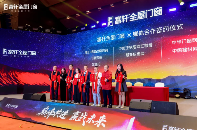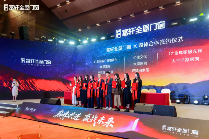 2026年,富轩全屋门窗再度携手广东网络广播电视台、搜狐焦点家居、中居文化、网易家居、大家居网、77°全球家居先锋、贵仁相助战略咨询、门窗易哥、定峰汇、中国泛家居网红联盟、太平洋家居网、慧亚招商网、中华门窗网、中国建材网、环球网家居,共同签订媒体合作协议,打造全方位、多渠道的品牌传播与市场推广体系。