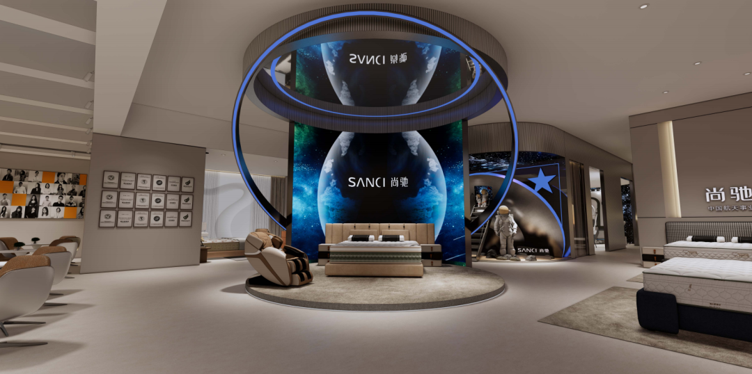 本次展会,SANCI尚驰品牌以航天视野为装饰灵感,深邃的星际太空元素与精致的尖端睡眠寝具交相辉映,仿佛将观众带入了一个充满未来科技感的梦幻世界。这不仅是对尚驰家居定制睡眠第一品牌的完美诠释,更是对未来家居生活的一次大胆探索与预演。