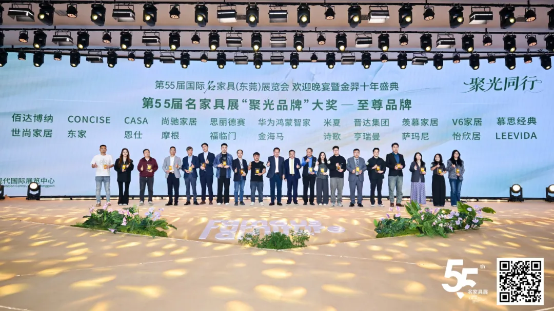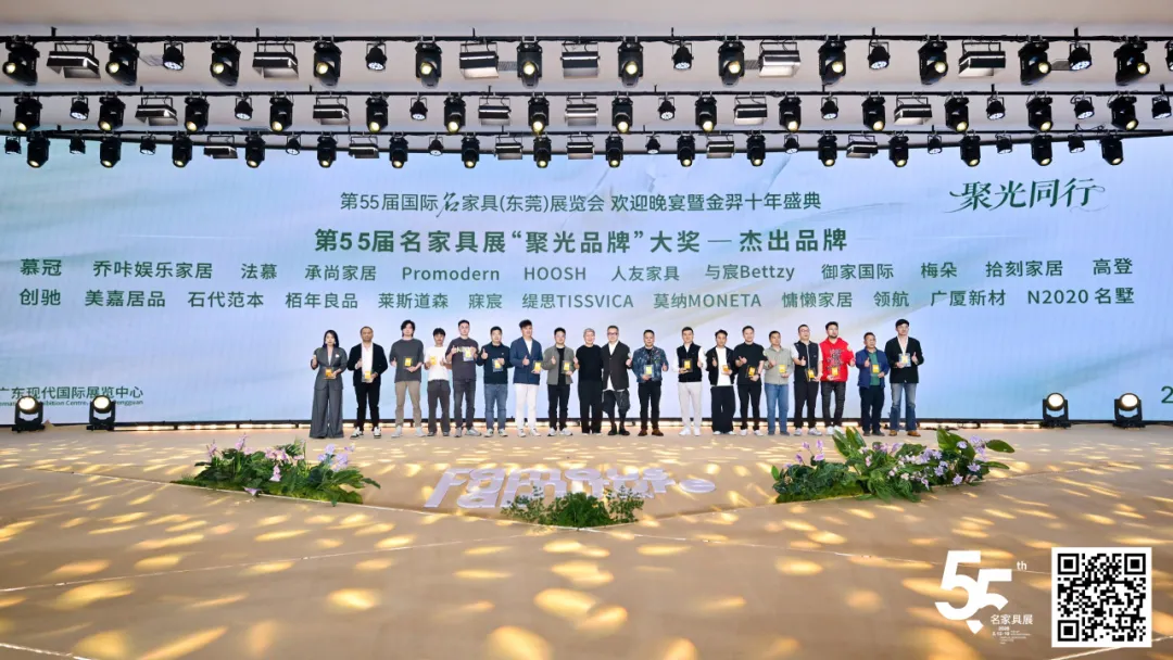 在第 55 届国际名家具(东莞)展览会欢迎晚宴暨金羿十年盛典现场,金羿十年特别大奖重磅揭晓,这一奖项是对十年深耕品牌的最高致敬。