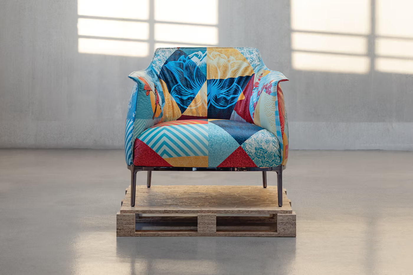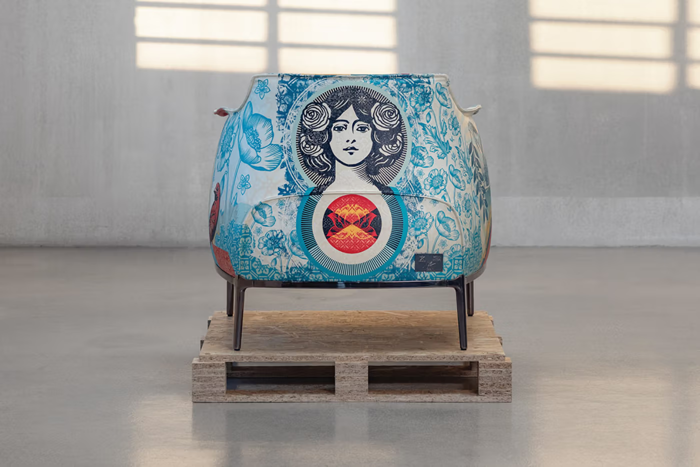 Poltrona Frau推出Archibald Delicate Balance限量版扶手椅,由街头艺术家Shepard Fairey联合创作,全球仅限量200张,每一张均配有独立编号。