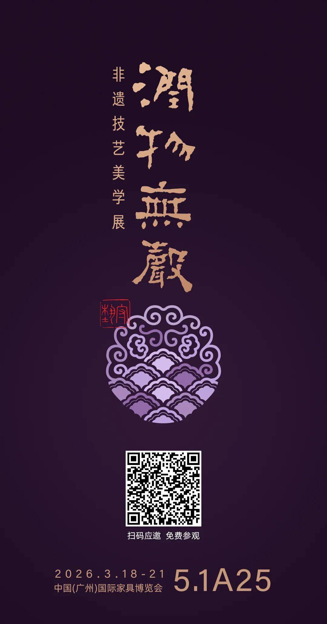 2026年3月18日至21日,第57届中国(广州)国际家具博览会期间,“润物无声”非遗技艺美学展将在广交会展馆A区5.1A25举办。展览系统呈现了传统家具、四大名绣、陶瓷、景泰蓝等18项非遗技艺。尤为引人注目的是,享誉收藏界的伍炳亮大师携其代表性明式、清式家具珍品亮相家博会舞台。届时,近十件(套)明式与清式经典家具将与观众见面,其中曾于2023年-2024年在中国国家博物馆《澄古匠心—伍炳亮家具艺术展》中展出的《清式小叶紫檀镶百宝玉石九屏风》《明式海南黄花梨透空后背网格式书架》《明式海南黄花梨素身壶门四出齐头官帽椅》《明式海南黄花梨假四面平小马蹄足厚板画桌》《明式海南黄花梨灵芝纹带托泥翘头条案》等重量级藏品,将以其精绝的工艺与深厚的文化底蕴,成为本次展览的焦点,向世界展现东方生活美学的永恒魅力。