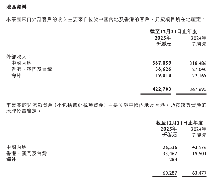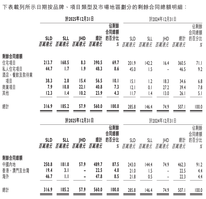 截至2025年末,集团剩余合同总额为5.6亿港元,较上年末的5.07亿港元增长10.5%。从区域分布看,海外市场剩余合同额占比由4.4%提升至8.5%,国际化布局成效初显。