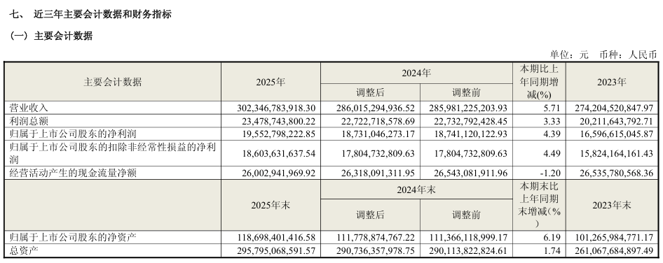 3月26日晚间,海尔智家发布2025年财报。报告期内,公司实现营业收入3023.47亿元,同比增长5.71%,年营收首次突破3000亿元大关;归属于母公司股东的净利润195.53亿元,同比增长4.39%。经营活动产生的现金流量净额260.03亿元,为净利润的1.33倍,盈利质量稳健。