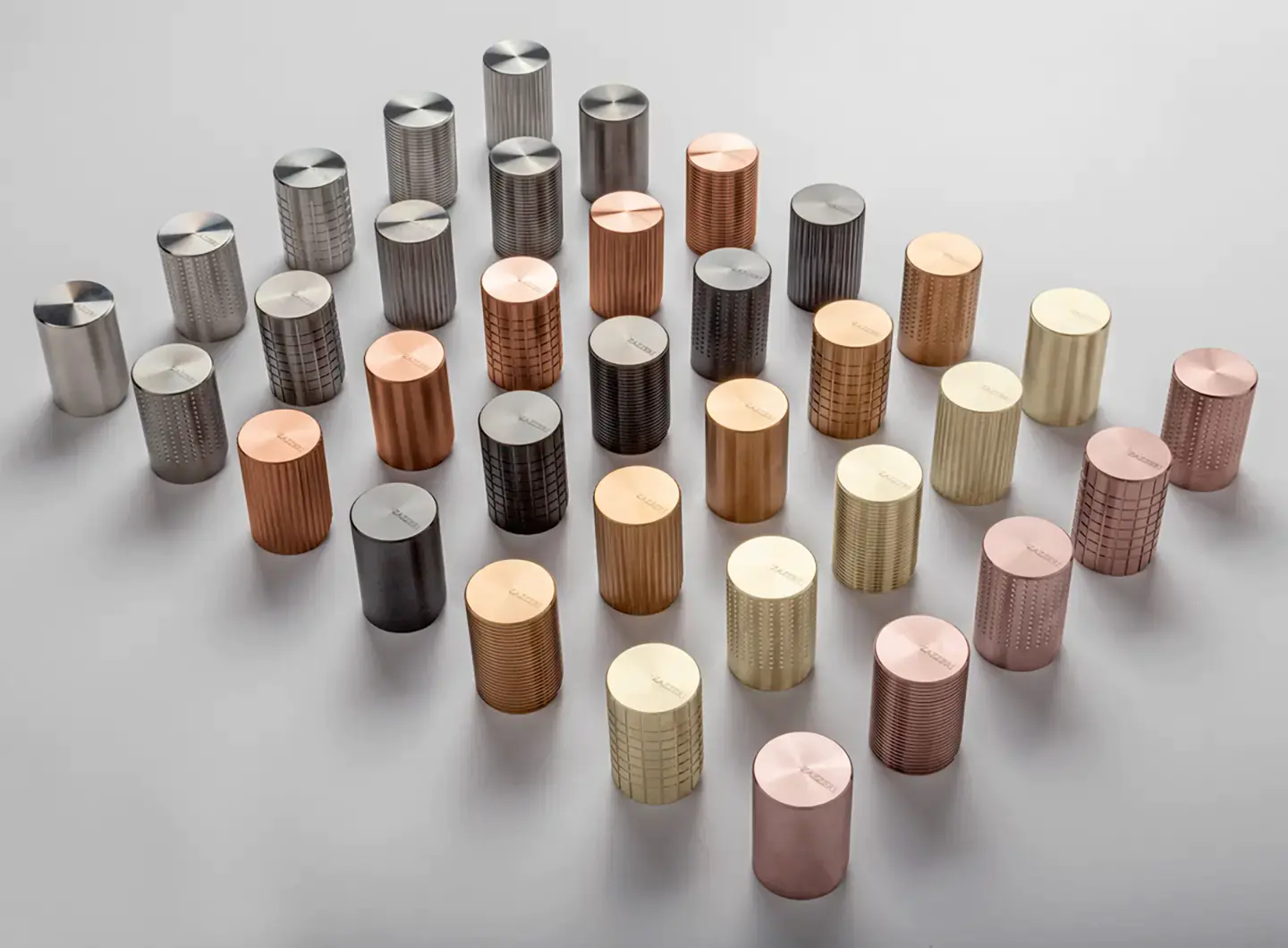 由 Roberto Innocenti 为 Zazzeri 设计的 Z316_sh 系列具有五种凿刻纹理的圆柱形把手。提供拉丝版本和六种 PVD 饰面,专为具有精致装饰细节的极简环境设计。