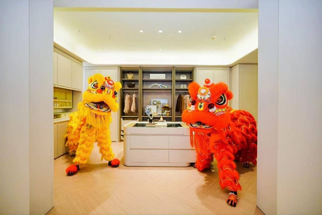 随后,醒狮登场献艺,灵动的表演将气氛推向高潮。表演结束后,中至信家居总经理陈华水先生与主理人臧春艳女士共同为醒狮点睛,寓意“点石成金、生意兴隆”,为新店赋予蓬勃生机。点睛仪式后,舞狮队伍前往展厅进行采青表演,将好运与福气传递至每一个角落。