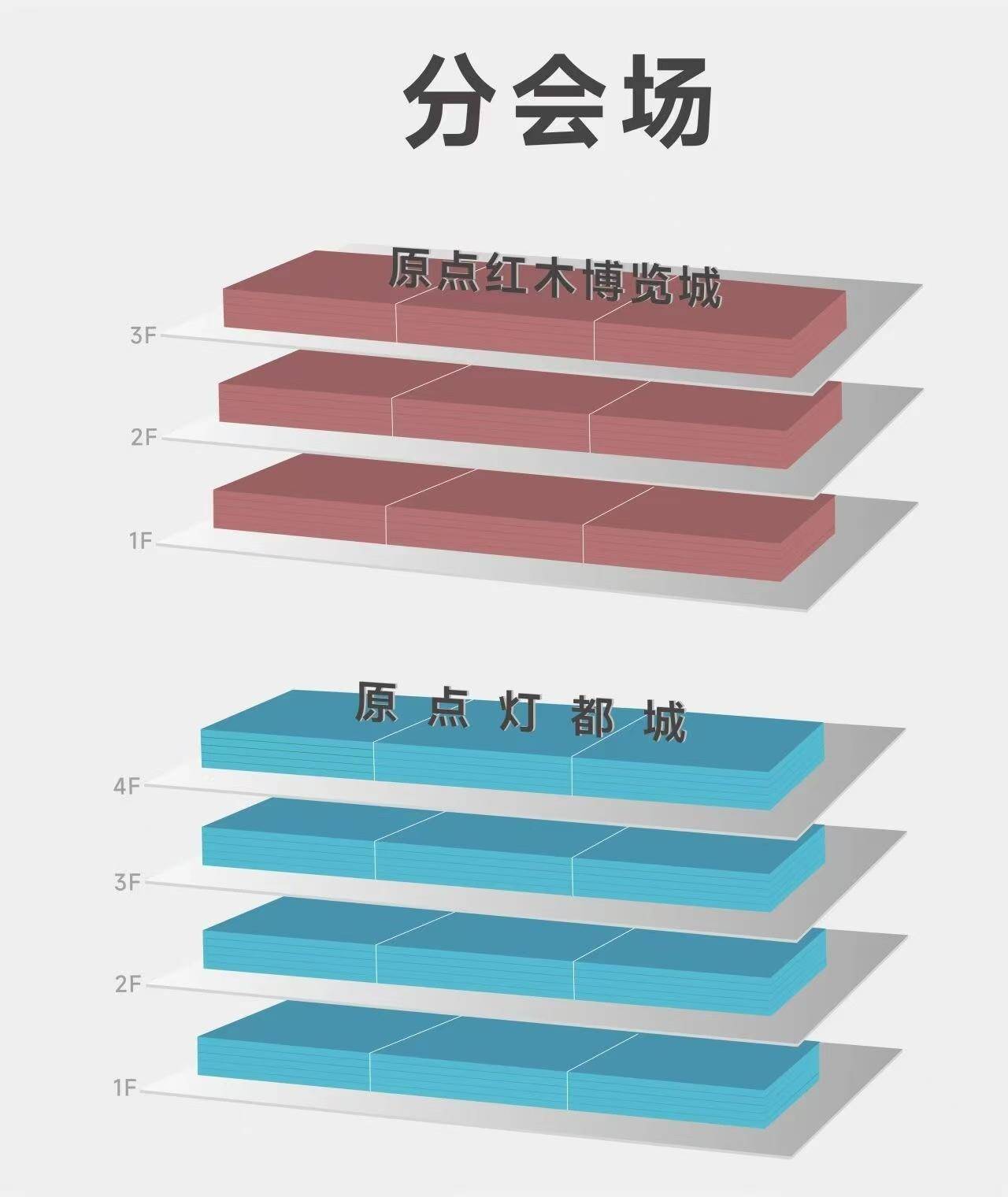 ◎ 上:西安·原点红木博览城楼层立体图 下:西安·原点灯都城楼层立体图