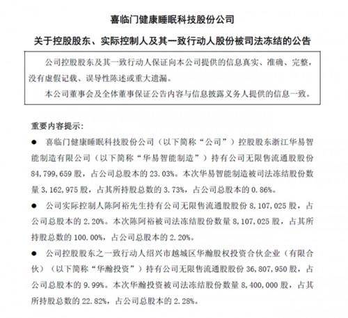 4月1日,喜临门健康睡眠科技股份公司(603008.SH)连续披露多份公告,引发市场对公司经营状况的关注。
