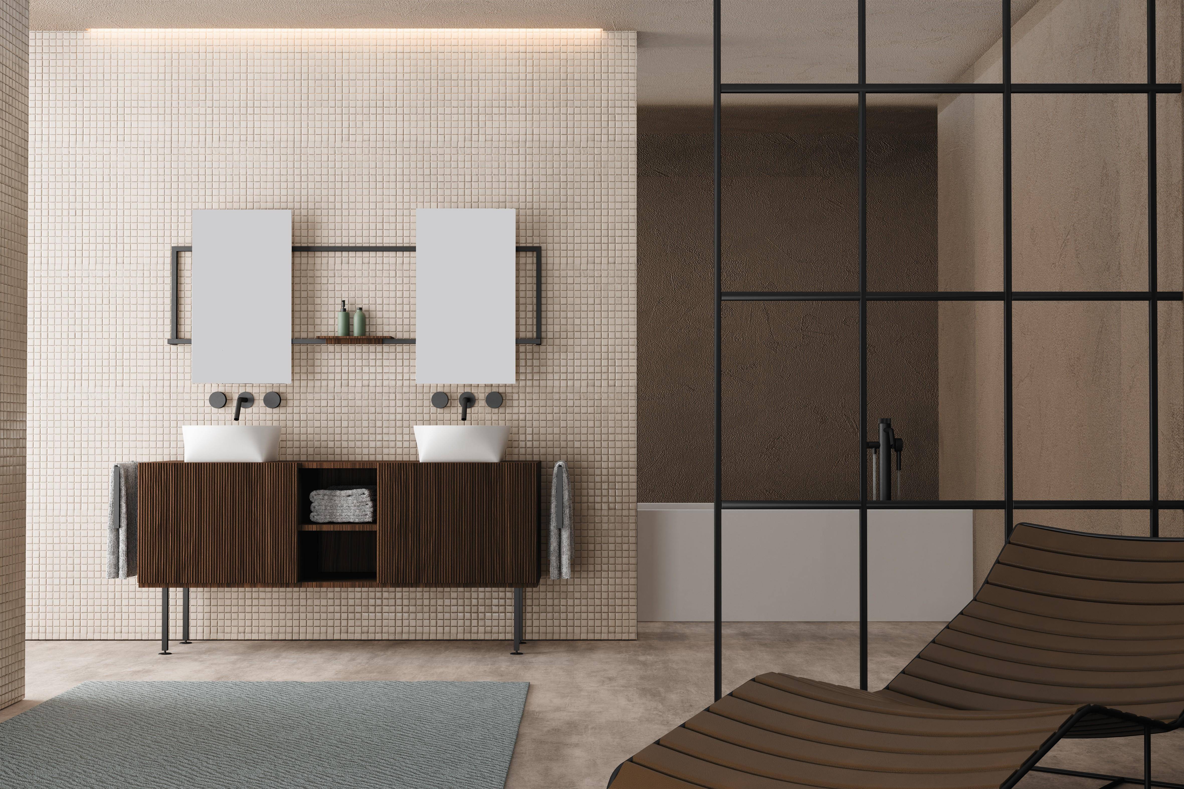 这一设计从两种基础几何形态的融合中生长而出:方形象征稳定,圆形意味着开放。二者在过渡中的自然衔接,塑造出兼具雕塑感与纯粹感的器物,也让连续性与和谐感在视觉上得到完整呈现。通过这样的造型语言,SCARABEO YUGO 将当代浴室重新理解为一个关乎身心舒缓的空间,一个越来越强调自我照料与内在平衡的场所。
