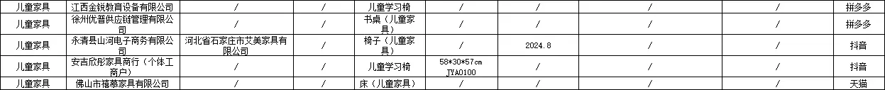 44批次儿童家具不合格,涉及“古宜”“习格”“英禾”等品牌