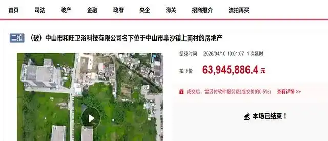 厂房还没建好公司就破产!中山和旺卫浴工厂6394万拍卖成交