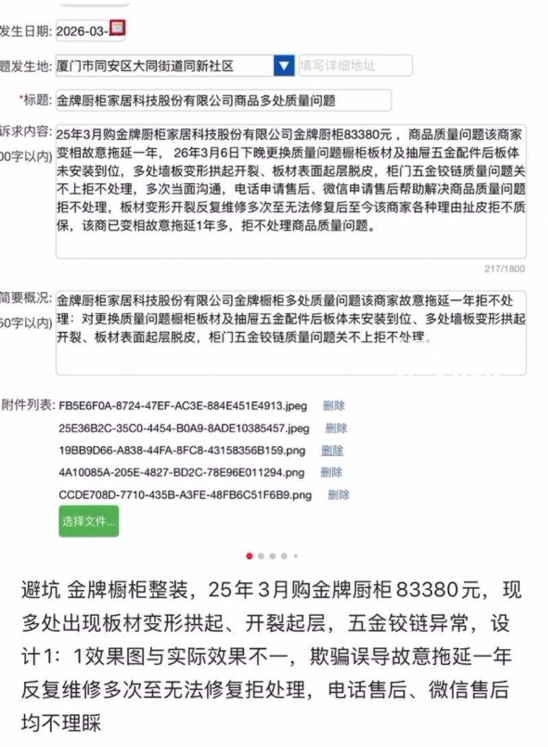 据悉,涉事商家为金牌橱柜旗下金牌整家定制的加盟店。