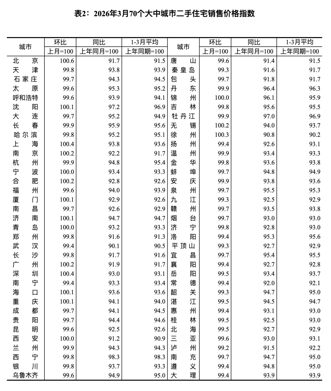 国家统计局城市司首席统计师王中华解读2026年3月份商品住宅销售价格变动情况统计数据: