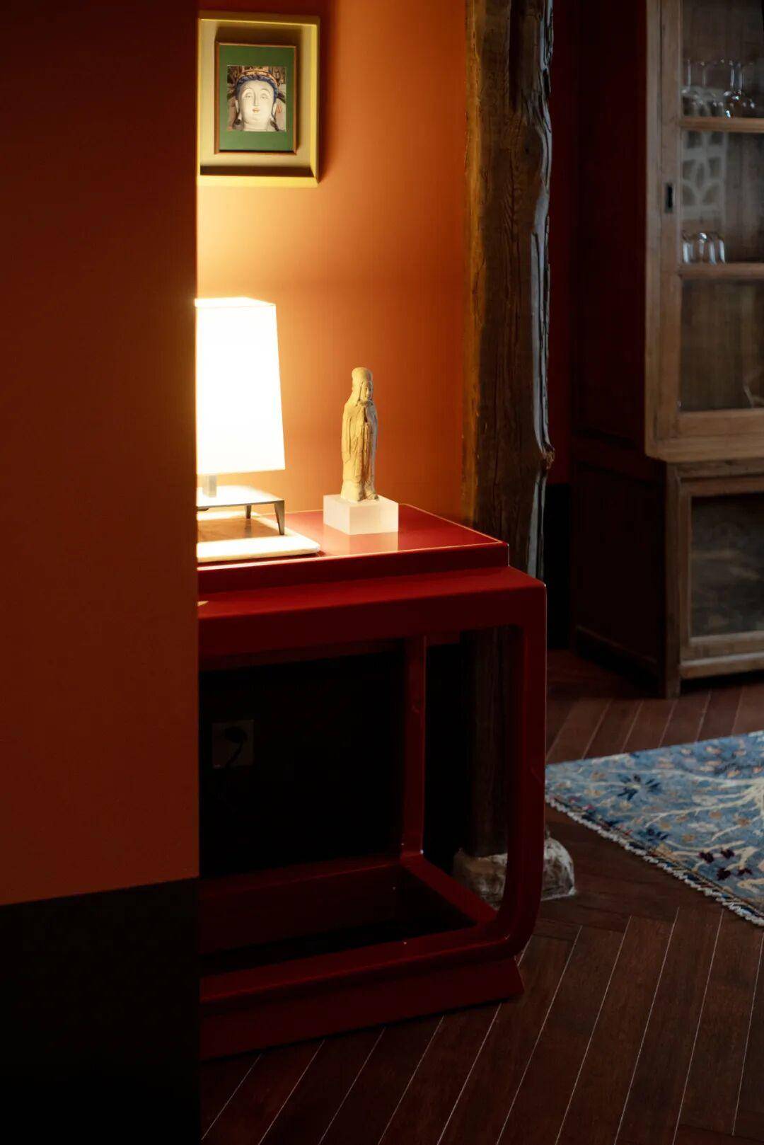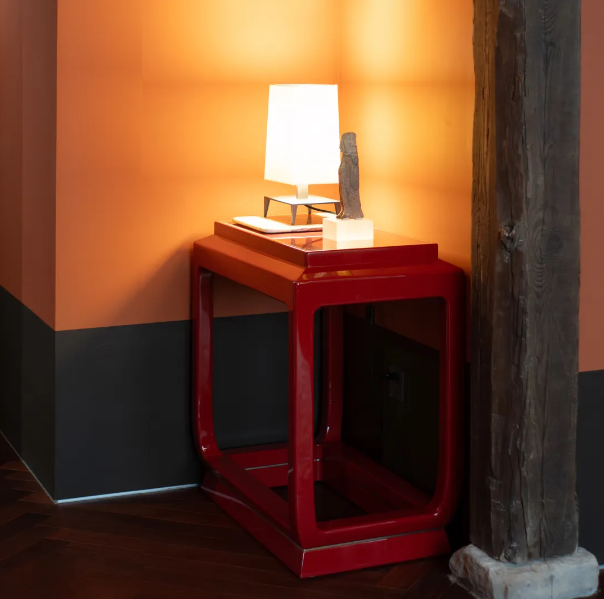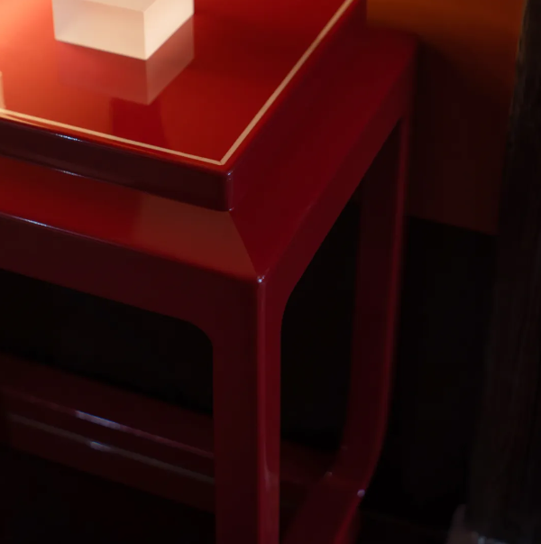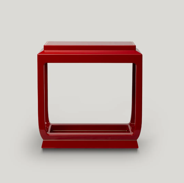 传统香几多为沉静素雅的色调,但在宋代绘画中,不乏朱红、素白的香几形象,它们往往跳脱背景,成为画面的视觉中心。「承恩香几」选择明亮的红色亮面漆为主体,使其在空间中自然成为焦点,白色线条的嵌入则进一步赋予其轻盈与灵动的气息。它并非一款纯粹服务于日常的家具,而更接近精神性的存在——关于仪式、关于敬畏。将其置于当代生活空间,既是对日常的一次轻微偏离,也是对“辋川”精神世界的召唤与向往。
