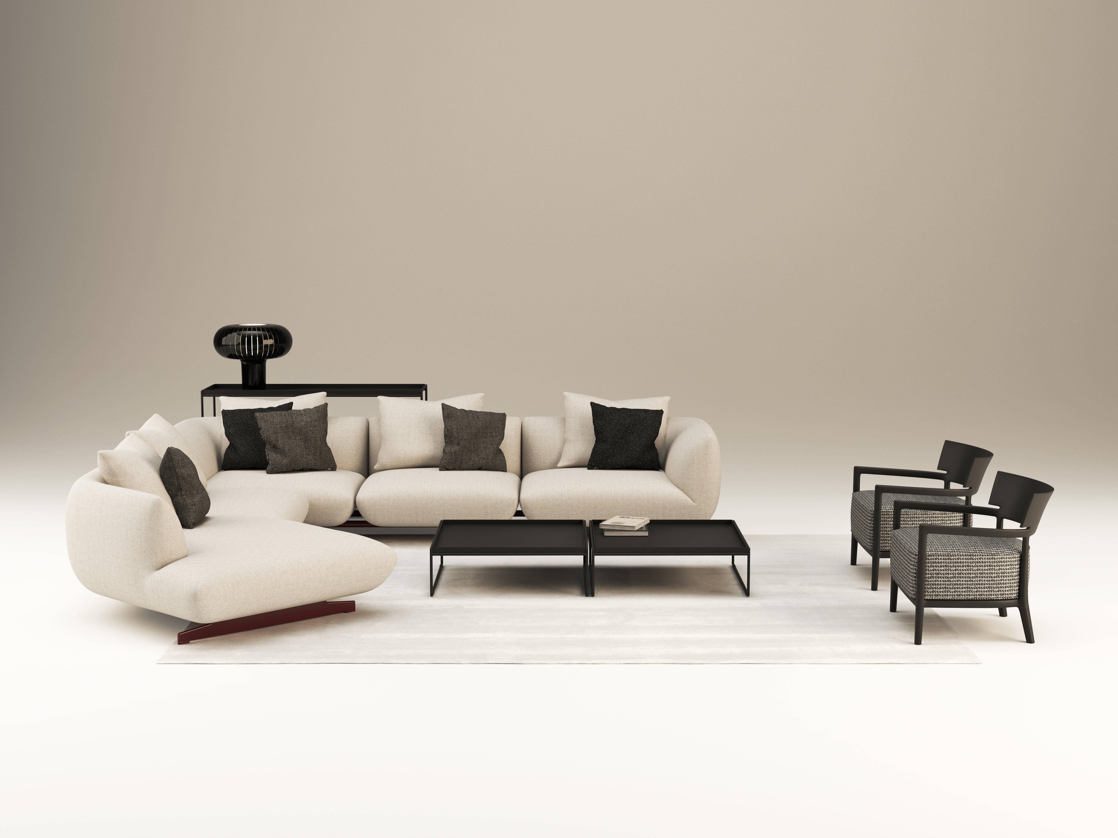 SUPER TUBBY 采⽤模块化元素构成,⽀持多种组合⽅案。这套简约的坐位系统易于配置,能够灵活适应不同的空间需求。得益于宽⼤的⽐例和⼤坐深设计,这款沙发营造出⼀种迎接的姿态,将客厅转化为兼具社交与放松功能的场所。