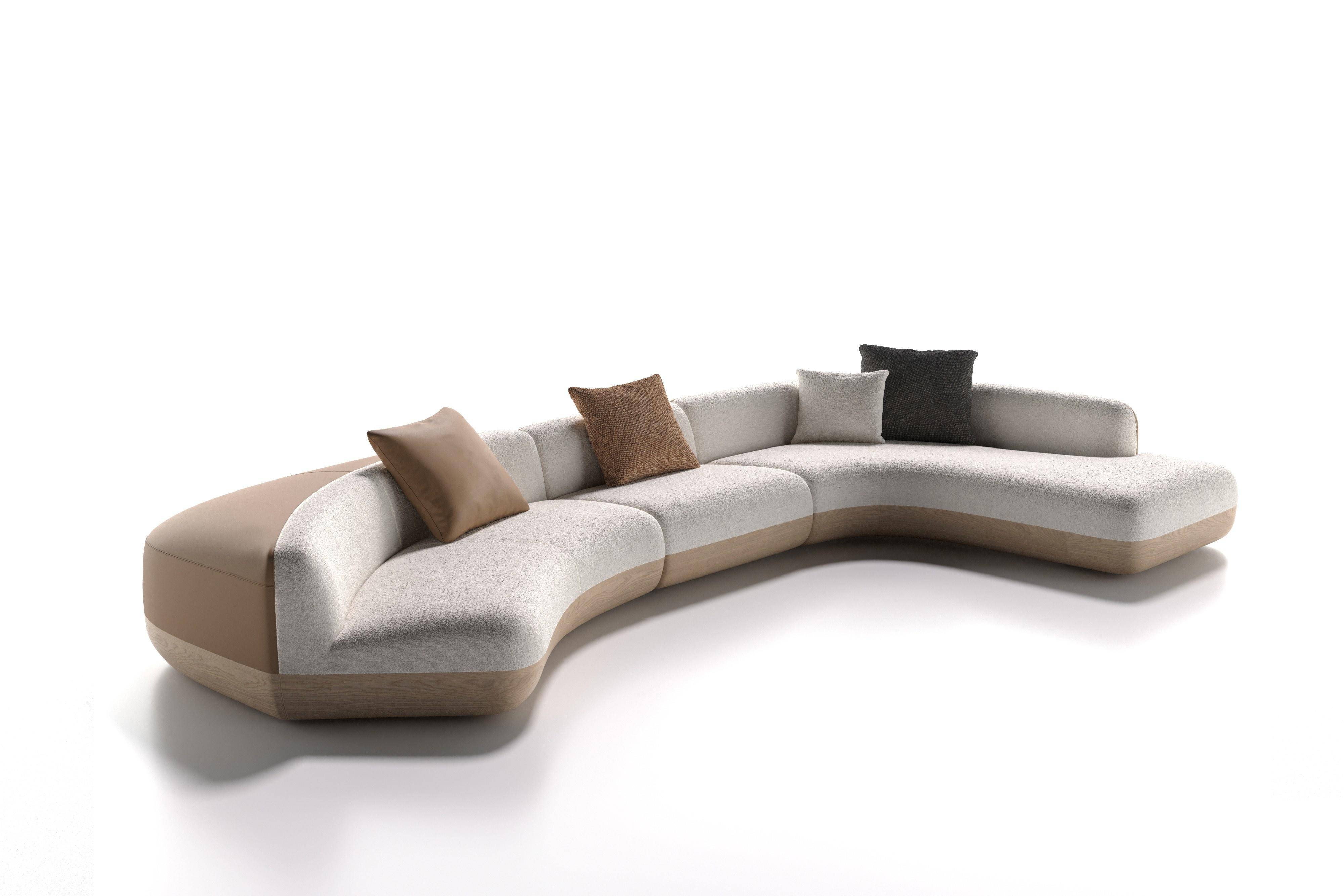 首先,是设计语言的构建。普西纳并未沿用传统中式家具的符号化表达,而是尝试以更抽象的方式转译东方语境。例如此次亮相米兰的几款重点产品,沙发·映月通过连续曲线建立柔性结构;茶几·砚池以内敛几何重构文房意象;边几·听雨以材质整体性呈现流动感,长椅·枕石则展现出东方语境中“枕石而息”的生活意趣。