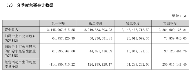 从单季度看,2025年第四季度成为全年唯一出现扣非亏损的季度。当季公司实现营业收入22.65亿元,归母净利润7,383.90万元,但扣非净利润为-3,812.05万元,显示年末业绩兑现存在阶段性压力。