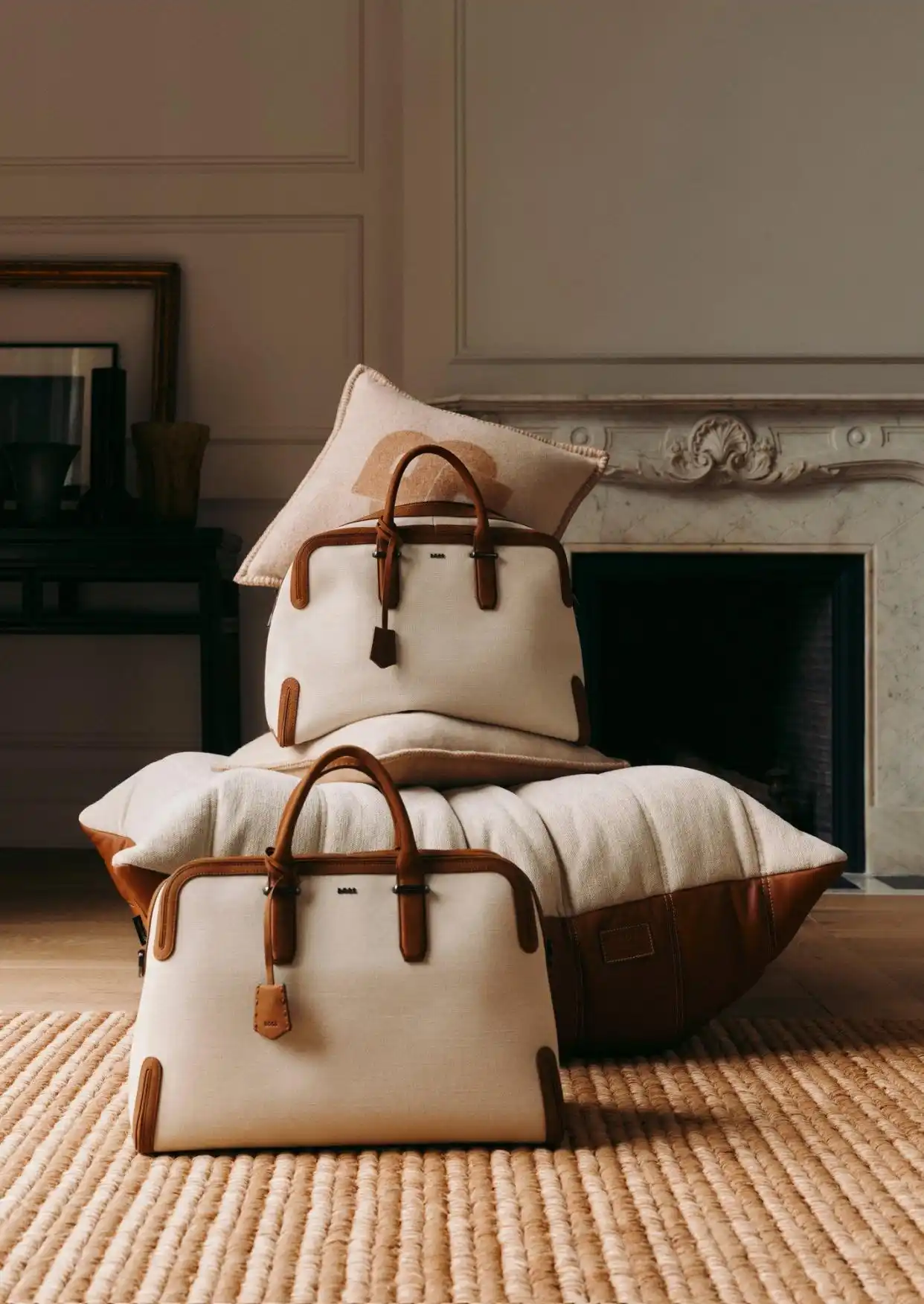 精心臻选的BOSS配饰系列,与BOSS|LIGNE ROSET Togo的匠心美学相得益彰。双色提花靠垫套与采用马鞍针法缝制的毛毯,巧妙呼应了座椅对材质层次的精妙演绎。此外,2026春夏系列中的Madison手袋与Gary运动鞋等单品也经特别甄选,纳入此次搭配叙事——复刻Togo座椅皮革与织物的双材质拼接设计,尽显BOSS剪裁精髓。浅米色棉麻帆布Gary运动鞋点缀以皮革饰边,与同色系Togo沙发的雅致美学一脉相承;纹理帆布大容量旅行袋搭配皮革饰件、可拆卸肩带与钥匙扣,压印logo标识点缀其间。这一组合不仅为步履不停的当代生活注入精致格调,更将BOSS的剪裁美学边界,从衣橱从容延伸至室内设计领域。