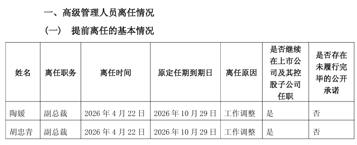 公司表示,上述人事调整不会对公司的正常运作及经营管理产生影响。公司董事会对离任高管在任职期间为公司发展作出的贡献表示衷心感谢。